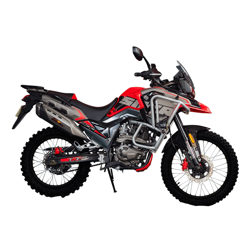La TK-SIKR combina un motor de 200cc con un diseño moderno y resistente. Su arranque eléctrico y neumáticos de alto rendimiento te garantizan una conducción estable y cómoda. Ideal para quienes buscan fiabilidad y aventura en cada trayecto