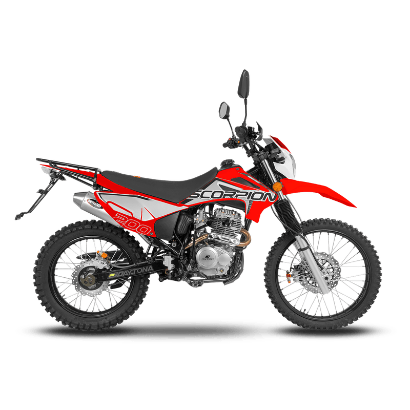 La Daytona Scorpion 200 cc. está forjada para desafiar los terrenos más complejos. Cada revolución de su motor es un latido de pasión que te impulsa hacia la cima, cada curva del camino es una danza perfecta entre hombre y máquina.