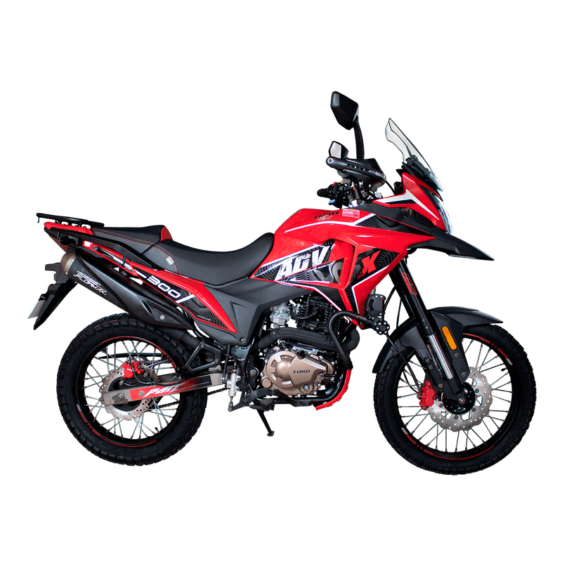 La Tuko ADV X 300 es una moto de aventura versátil con motor de 300 cc, ideal para ciudad y terrenos irregulares. Ofrece buen equilibrio entre potencia y maniobrabilidad para un manejo confiable. Su rendimiento de combustible es eficiente, brindando aproximadamente 22 km por litro.