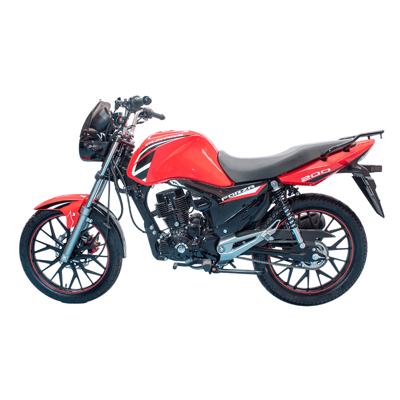La Dukare DK200 Forza es una motocicleta deportiva que combina estilo clásico y rendimiento moderno. Su motor de 200 cc ofrece una potencia adecuada para desplazamientos urbanos y viajes cortos, mientras que su diseño robusto y componentes de calidad aseguran durabilidad y confort en cada viaje.